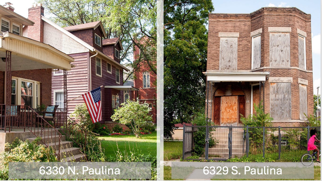Johnson and Krysan's work becomes so vital because, rather than just document patterns, it offers solutions, disruptions, ways to upend the steady accrual of segregated space. Johnson’s Folded Map Project, for instance, encourages Chicago residents to find pairs of "map twins”—neighborhoods with a different composition than one’s own for users to visit, in some instances the literal mirror opposite on the city’s gridded map (see above photo). It's more than just a prompt to see the city; it's a structured way to move through a city and chip away rules like “don’t go.” Johnson’s accompanying Action Kit guides participants through a careful process: reflect on your own neighborhood, find its "twin," then explore the twin not as a tourist but as a temporary resident. Visit the grocery store, find a sit-down restaurant, locate the nearest bus stop, and so on. Notice what's present, what's missing. Share these experiences not just on social media, but in conversations with friends, family, and colleagues.